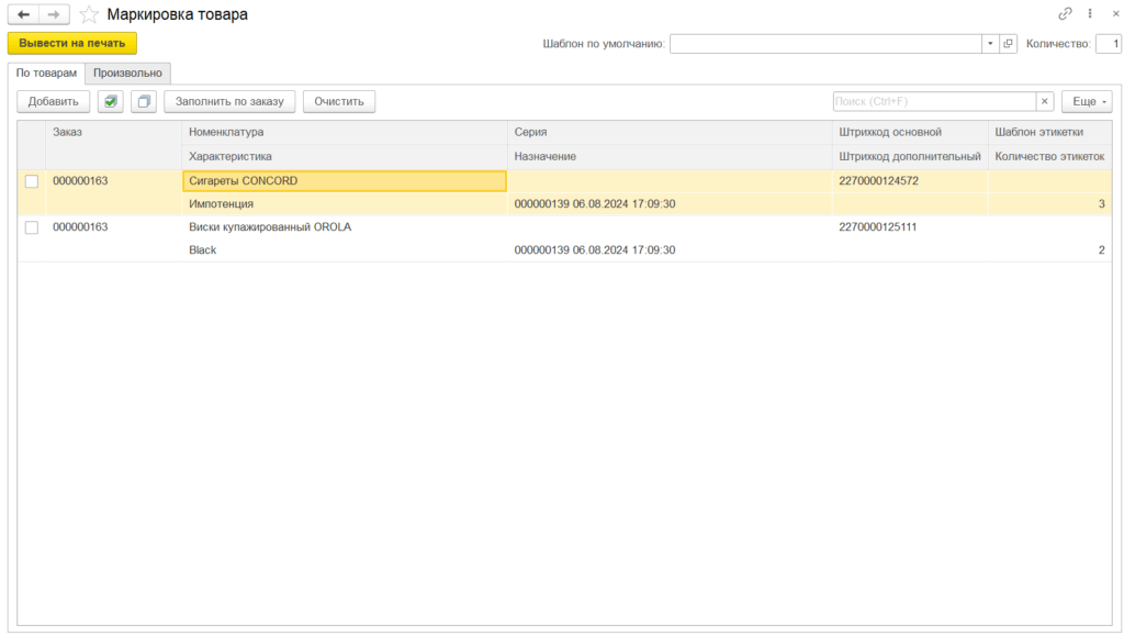 Чтобы маркировать товар, необходимо распечатать этикетки. Для этого: