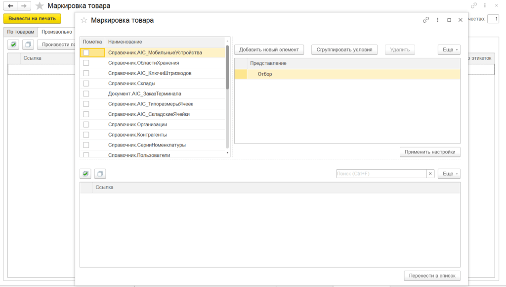 Если необходимо маркировать товар, который не привязан к конкретному заданию, можно использовать рабочее место «Маркировка товара». В этом разделе можно вручную добавить товары или выбрать их из нескольких заказов.